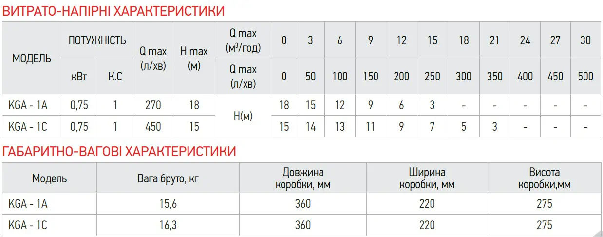- Робоче колесо: Латунь. Напівзакритого типу для використання з відкритих водойм.