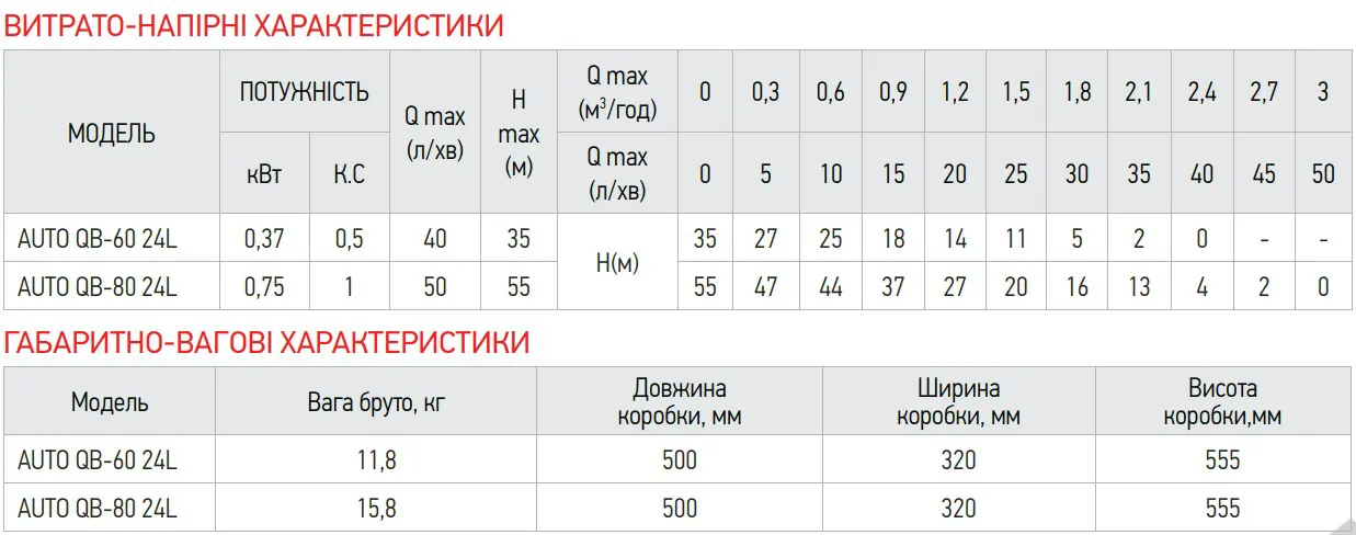 | Максимальний напір | 55 м |